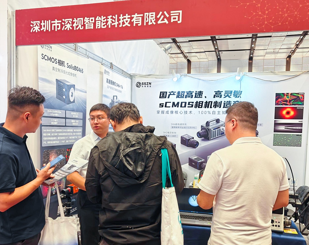 会议期间,深视智能展台气氛热烈。众多专家学者就产品性能与应用前景踊跃提问,与我们的技术专家展开了深入交流。他们对深视智能科学相机在弱光条件下的高效探测能力表现出浓厚兴趣,积极参与现场演示,并围绕技术原理、实验适配及操作细节等方面展开探讨,我们的技术团队均予以专业细致的解答。