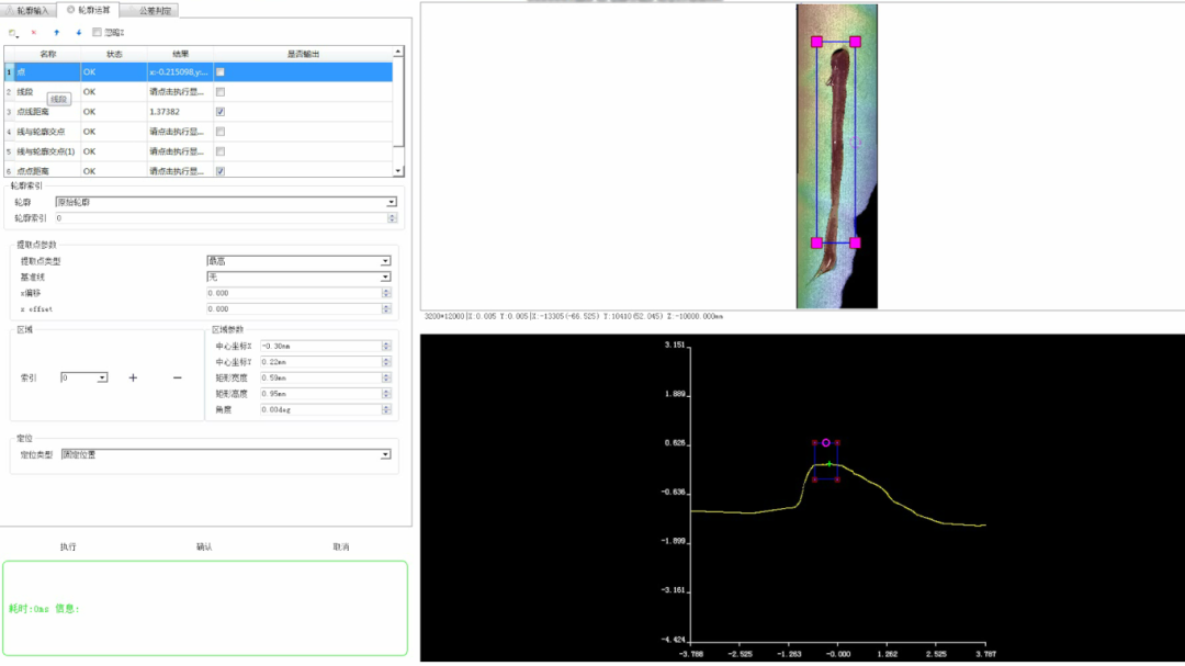 采用激光三角测量原理,高速扫描获取点胶路径的高密度三维点云数据, 单次扫描同步输出胶宽、胶高、完整3D轮廓信息,避免了对精密元件和未固化胶体造成物理损伤,保障了产品的完整性。