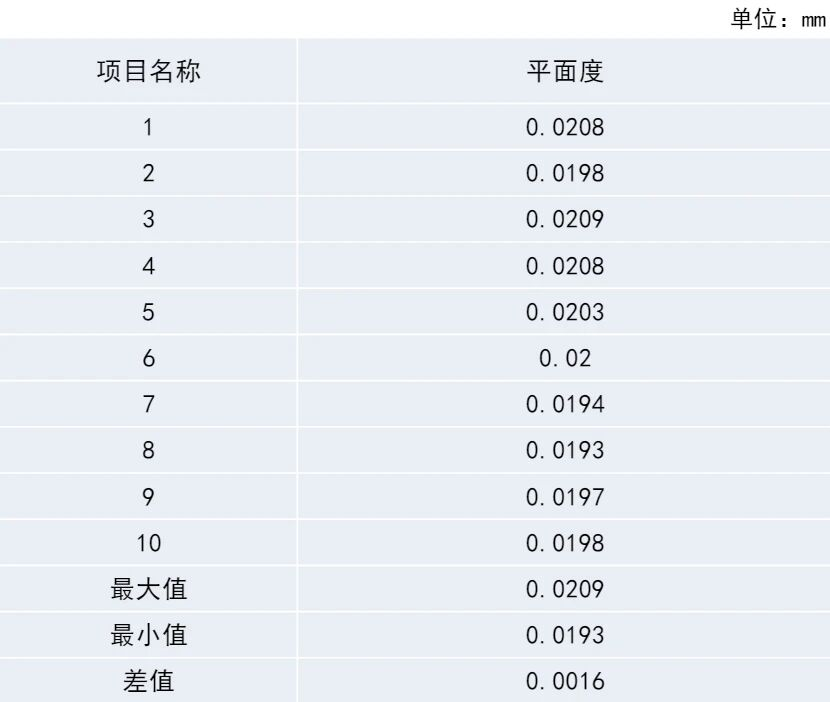 基于10次动态重复测试,SR8060三维激光轮廓测量仪测量手机屏蔽罩平面度的最大重复性误差仅为0.0016mm,远优于客户对平面度重复性≤0.008mm的精度要求,充分验证设备的测量稳定性与数据一致性;且支持67kHz高速扫描,单工件检测时间小于1s,完全匹配生产线全检节奏。