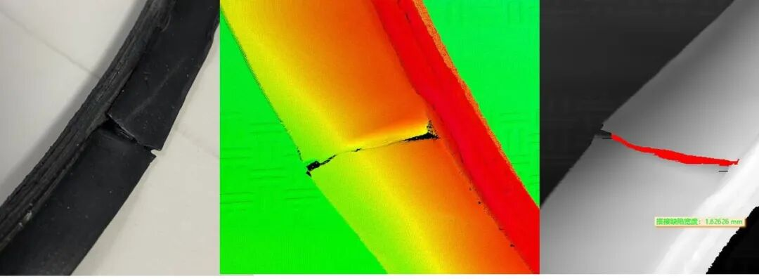 采用高速高精度的深视智能激光三维轮廓测量仪进行数据采集,可考虑对射激光三维轮廓测量仪进行震动规避,通过完整轮廓计算,分析卷折发生的具体原因,便于工作人员在设计和生产过程中采取相应措施规避,从而减少生产资源的浪费,降低轮胎残次品率,获取良好的经济效益。
