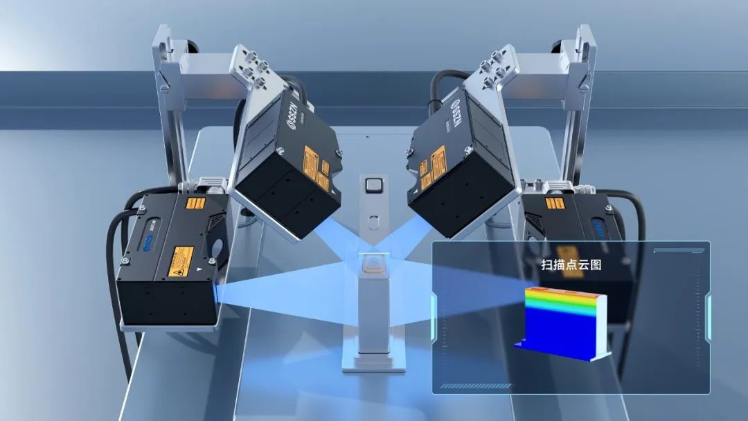 由于锂电池形状复杂且具有一定的反光特性,单一相机的检测范围和精度有限,难以获取完整且准确的外观信息。深视智能基于3D机器视觉的多相机扫描拼接轮廓技术应运而生,为锂电池外观质量检测提供了高效、可靠的解决方案。