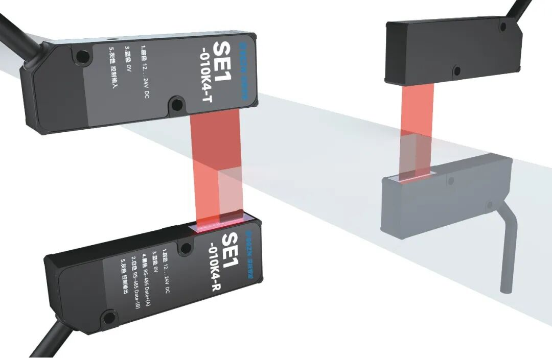 使用深视智能SE1系列高精度边缘测量传感器,在入卷工位对射式安装,采样频率4kHz,响应时间250μs,重复精度5μm,采用EtherCAT总线通讯,通讯速度快,抗干扰性强,能够完美的解决极片入卷纠偏检测难题。