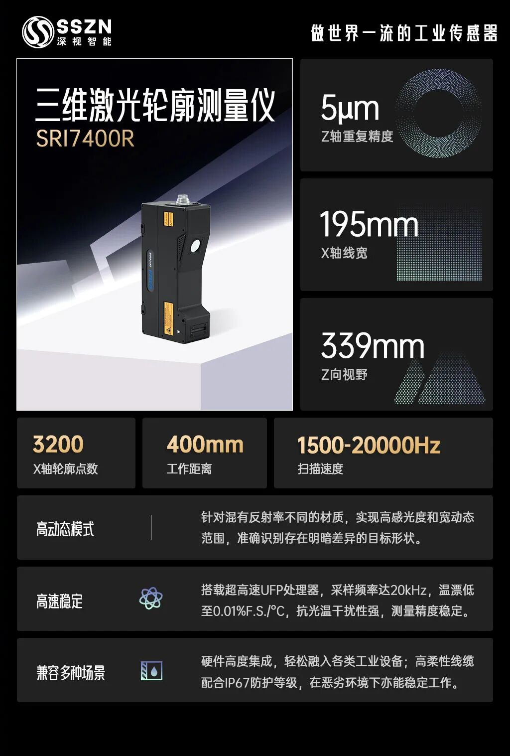 此外,深视智能SRI7400R一体式三维激光轮廓测量仪具有出色的稳定性和可靠性,能够在恶劣的工业环境中长期稳定运行,是自动化焊接产线中不可或缺的视觉引导利器。